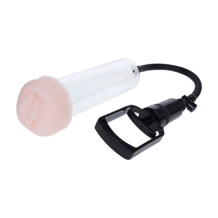 Вакуумная помпа с вибрацией выполнена из прозрачного материала. Воздух откачивается при помощи вакуумного шланга удобным механизмом откачки. Давление в колбе сбрасывается при помощи кнопки, расположенной на верхней части самой колбы. Механизм вибрации крепится к помпе с помощью эластичного материала с кармашком для виброяичка, которое управляется выносным проводным пультом. В набор входит также насадка для помпы в виде вагины, изготовленная из TPR. Мягкая, реалистичная. Диаметр отверстия насадки в не растянутом состоянии - 2,7 см.